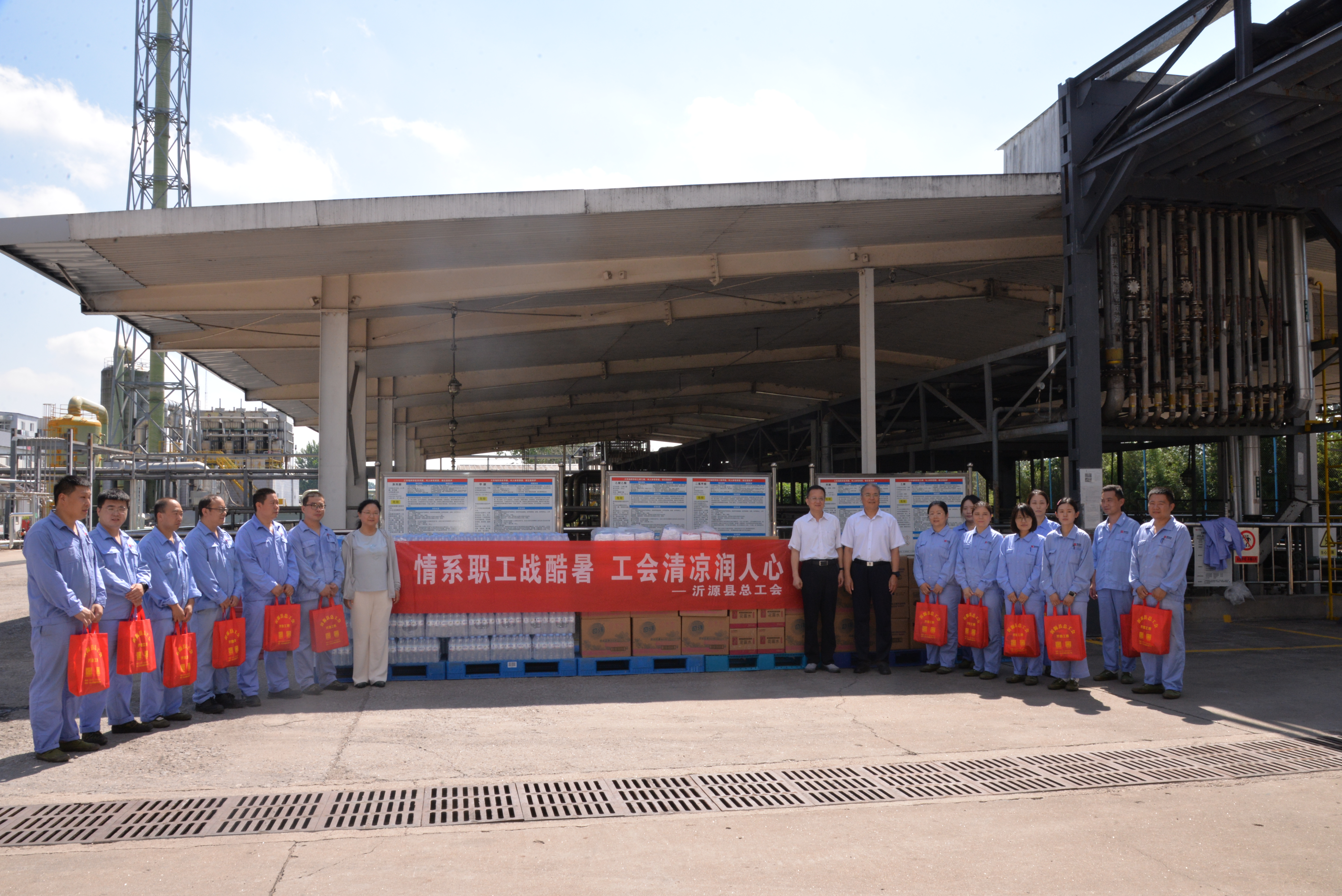 7月25日上午,沂源县总工会主席唐晓伟一行来到公司,开展2025年“夏送清凉”慰问活动。慰问组带来了矿泉水、毛巾、洗衣液等物资,为在高温天气下坚守岗位的员工送上关怀。公司高级副总经理、工会主席张金科及工会人员陪同参加活动。