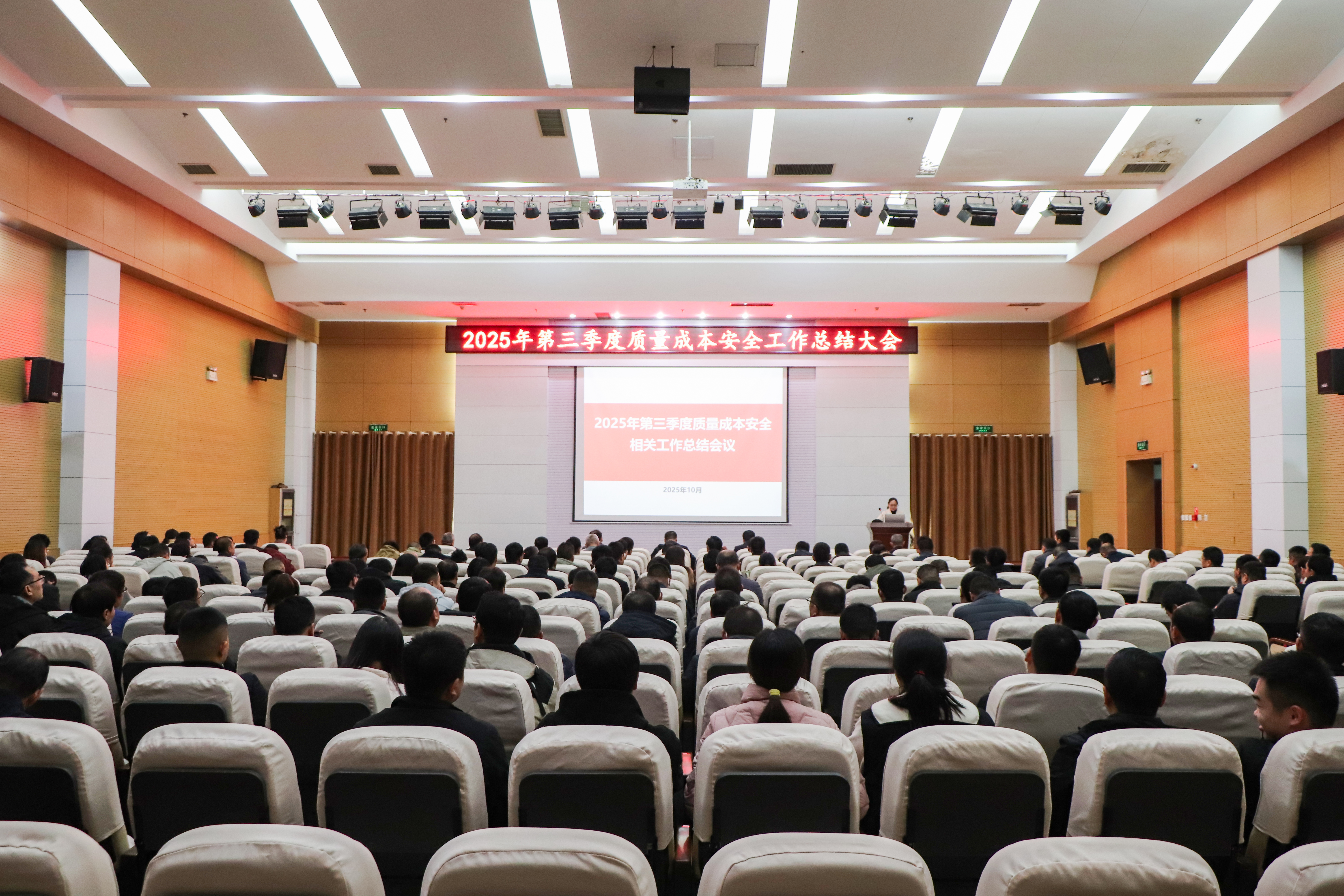 10月31日,公司第三季度质量成本安全工作总结会议在办公楼一楼会议室召开。总经理张光明出席会议并作重要讲话,办公室及人力资源部总经理吴乃森主持会议,生产、质量、供应、工程等部门负责人及250余名管理人员参会,共同复盘三季度工作,部署年末攻坚任务。