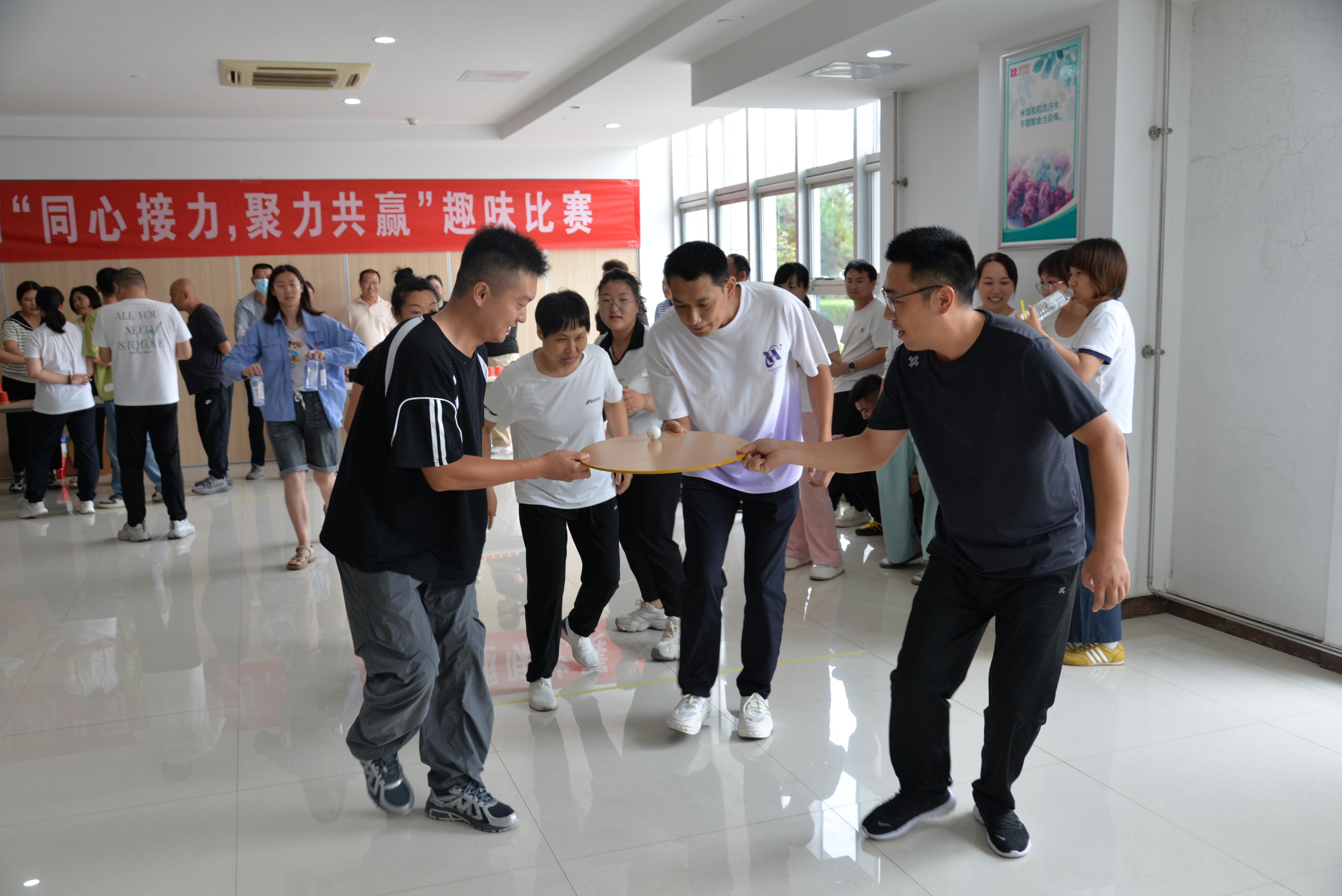 7月30日下午,食堂一楼南小厅热闹非凡,公司“同心接力,聚力共赢”趣味比赛火热开锣,来自各基层工会的18支参赛队伍齐聚一堂,用默契和汗水,共同演绎了一场精彩纷呈、笑语飞扬的团队协奏曲!